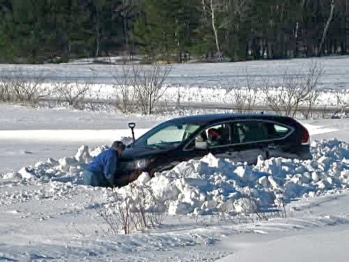 The man on the ground is our wonderful neighbor who brought over his toy to dig a hole.