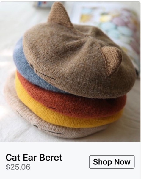 Cat ear beret? Okay, I admit I could almost see myself wearing that.