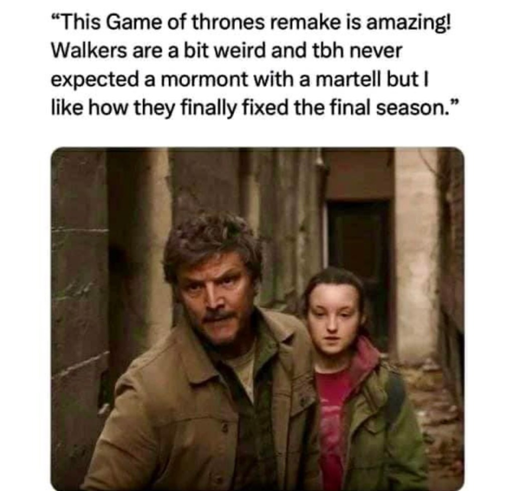 And if you’ve never watched Game of Thrones or The Last of Us? Never mind you won’t get this either.