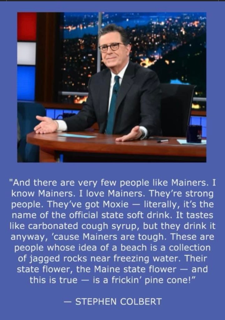After the recent mass shooting tragedy in Maine lots of people were paying tribute to the resilience of my state and its people. I happen to like Stephen Colbert’s take…