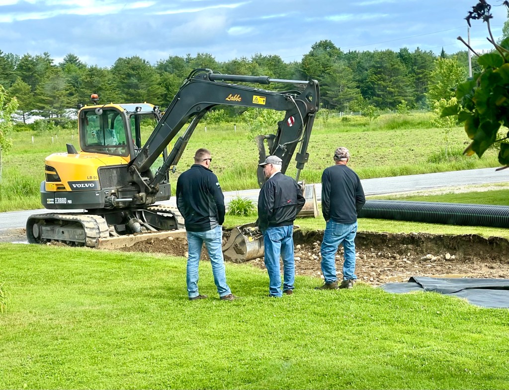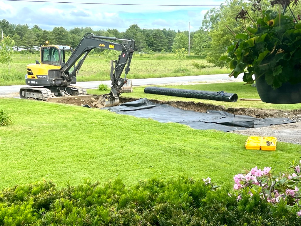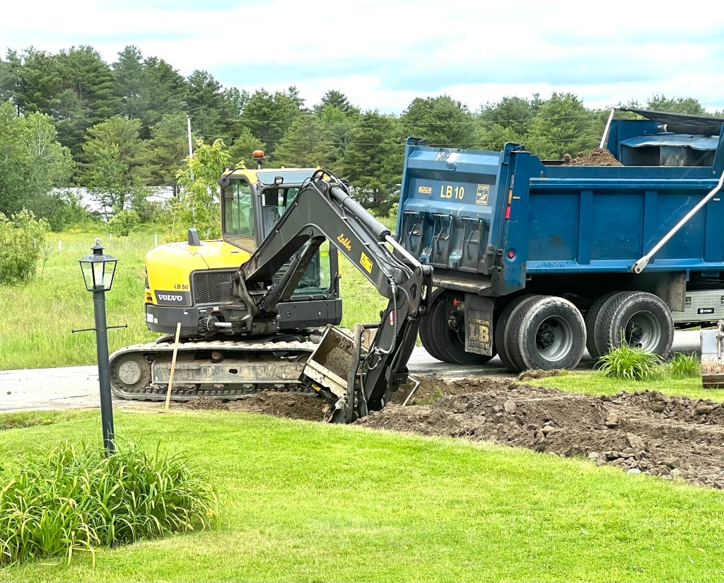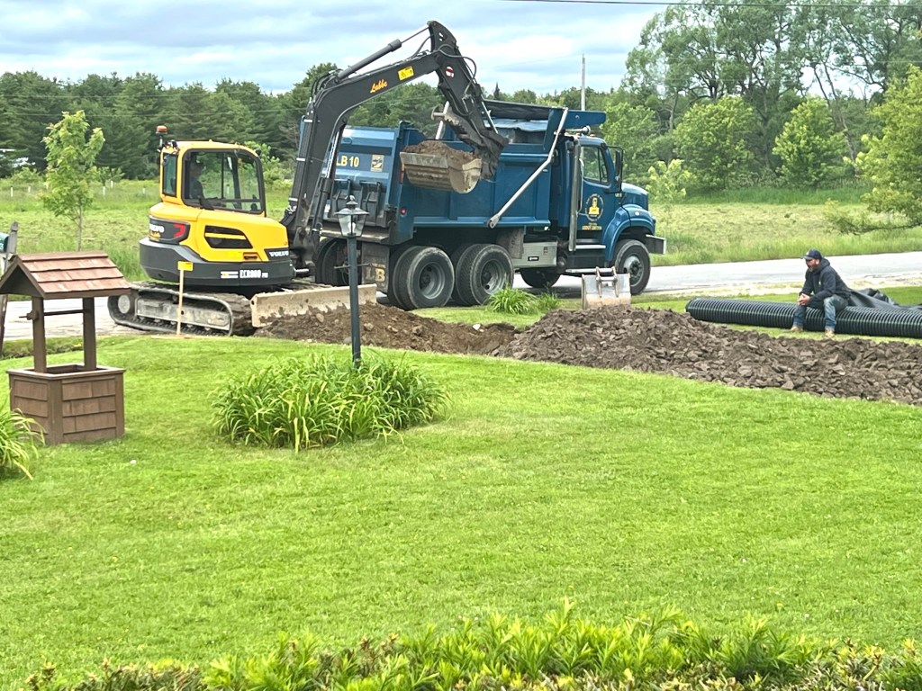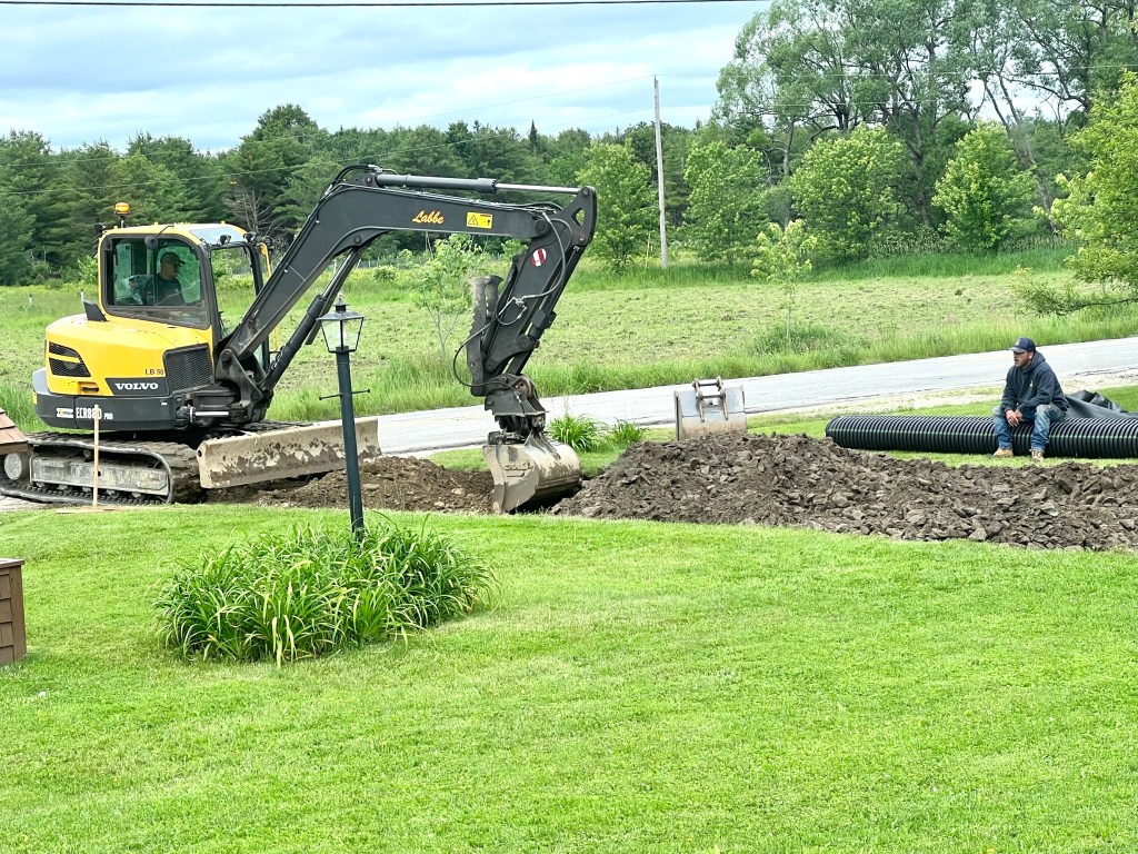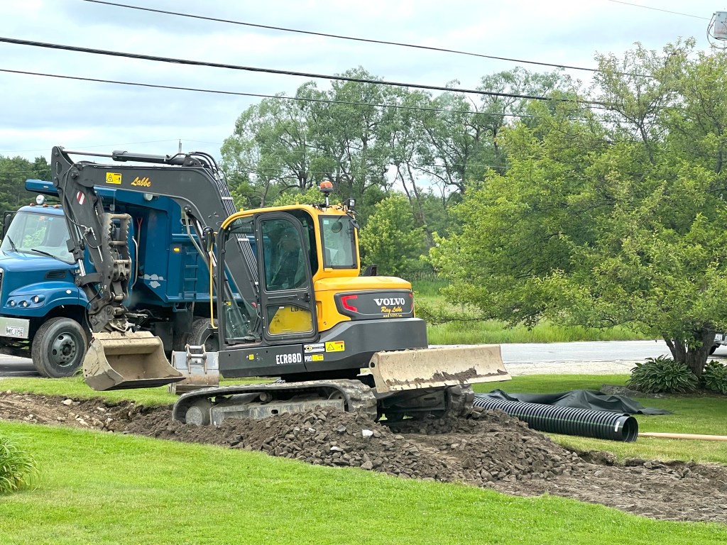 When conversation halted…. fabric was laid, bad dirt was removed and better dirt was delivered.