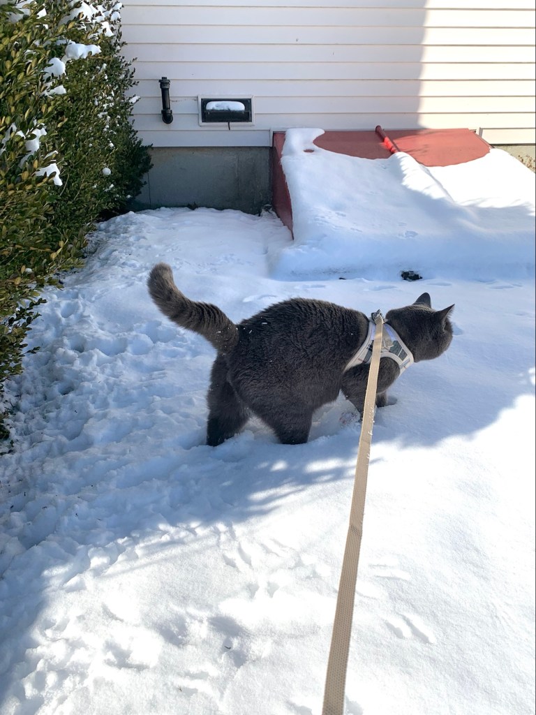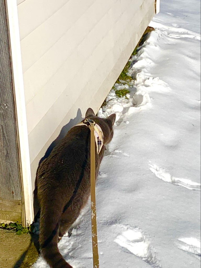 Walkies with Lord Dudley Mountcatten are continuing since the weather has been warm and cooperative. (It’s Maine. Anything over 10 degrees is considered warm.)