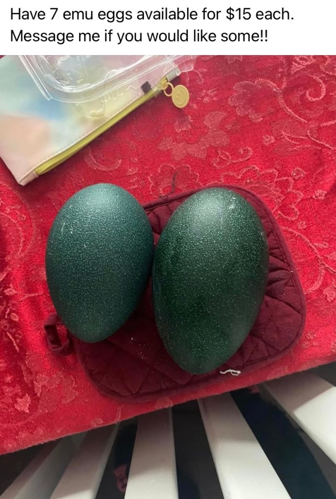 I still haven’t discovered where the local emus are hiding, but from the price of those eggs I’m thinking maybe we should start raising them. $15 a pop? Yikes!