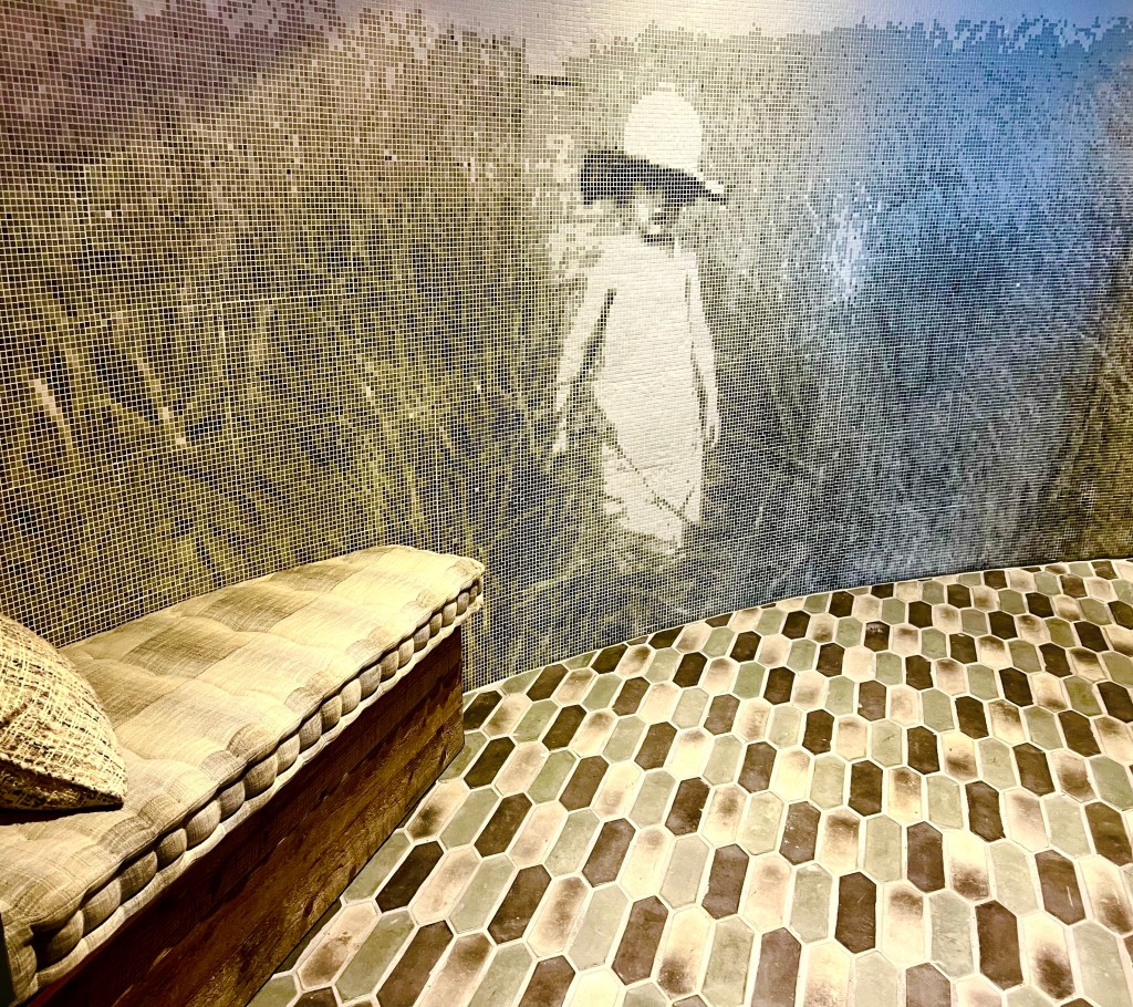 This oddly placed ceramic tile wonder … yes, if you zoom in you can see they’re all individual pieces… led to the rest rooms.