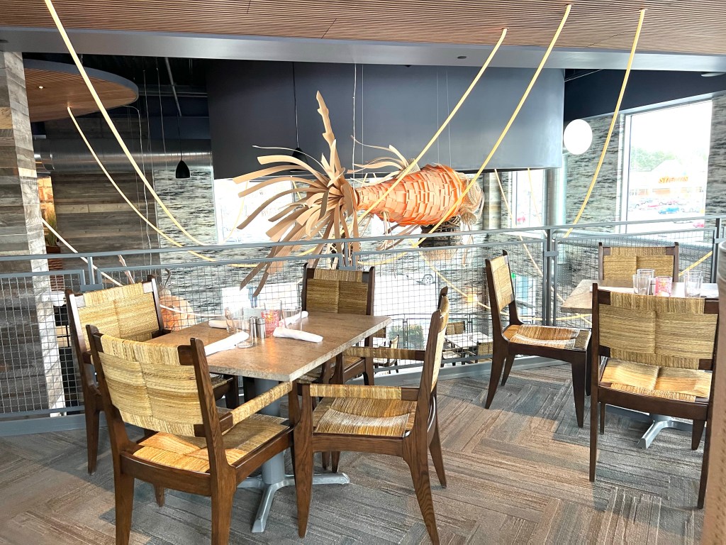 And while it was a lovely restaurant inside, the location they chose struck me as odd. While it’s sister sits on the water, this place is the bottom two floors of a law office building smack on Route 1… the busiest coastal route in the state. Falmouth is a wealthy town with multi million dollar estates on the shore. This pricey restaurant will do well, but it would have been nice to have a better view from its windows than the parking of the strip mall it sits in front of.