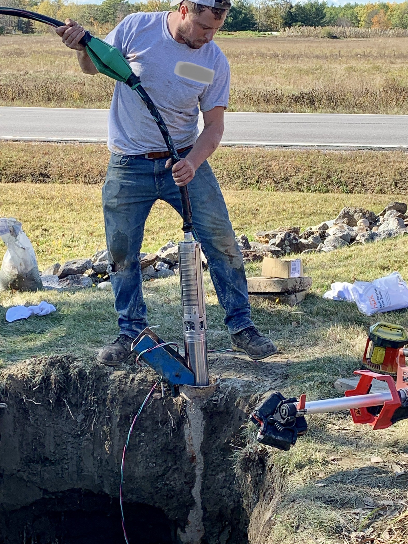 The new submersible pump was fitted, hooked up and sunk in the well.