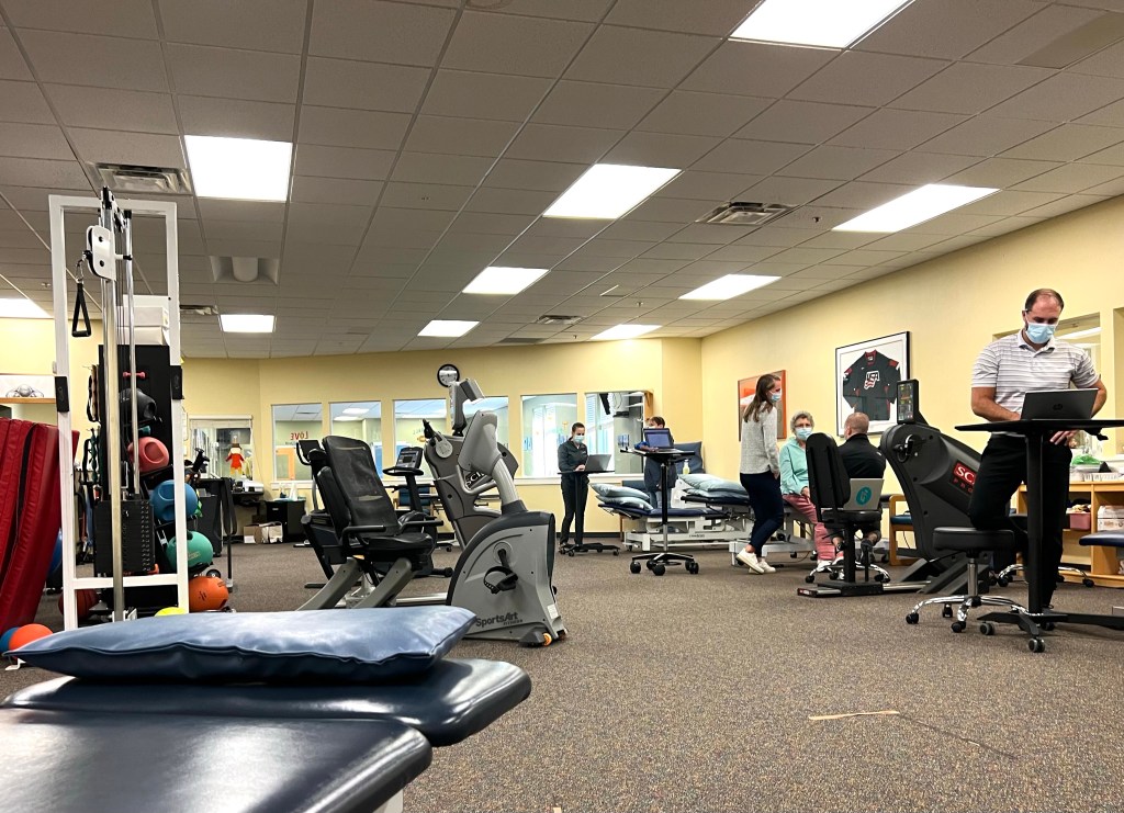Week #2 he prodded and pressed and took me into the huge gym attached to the building. Physical therapy my ass, I felt like I’d been thrown into NFL training camp. A plethora of squats, band work and what seemed like 300 knee bends later he made me pull and push 90 pounds of some weird weighted contraption down and back the entire length of the gym. When I was done I must have looked pathetic because he let me sit down with a pressurized ice cuff.