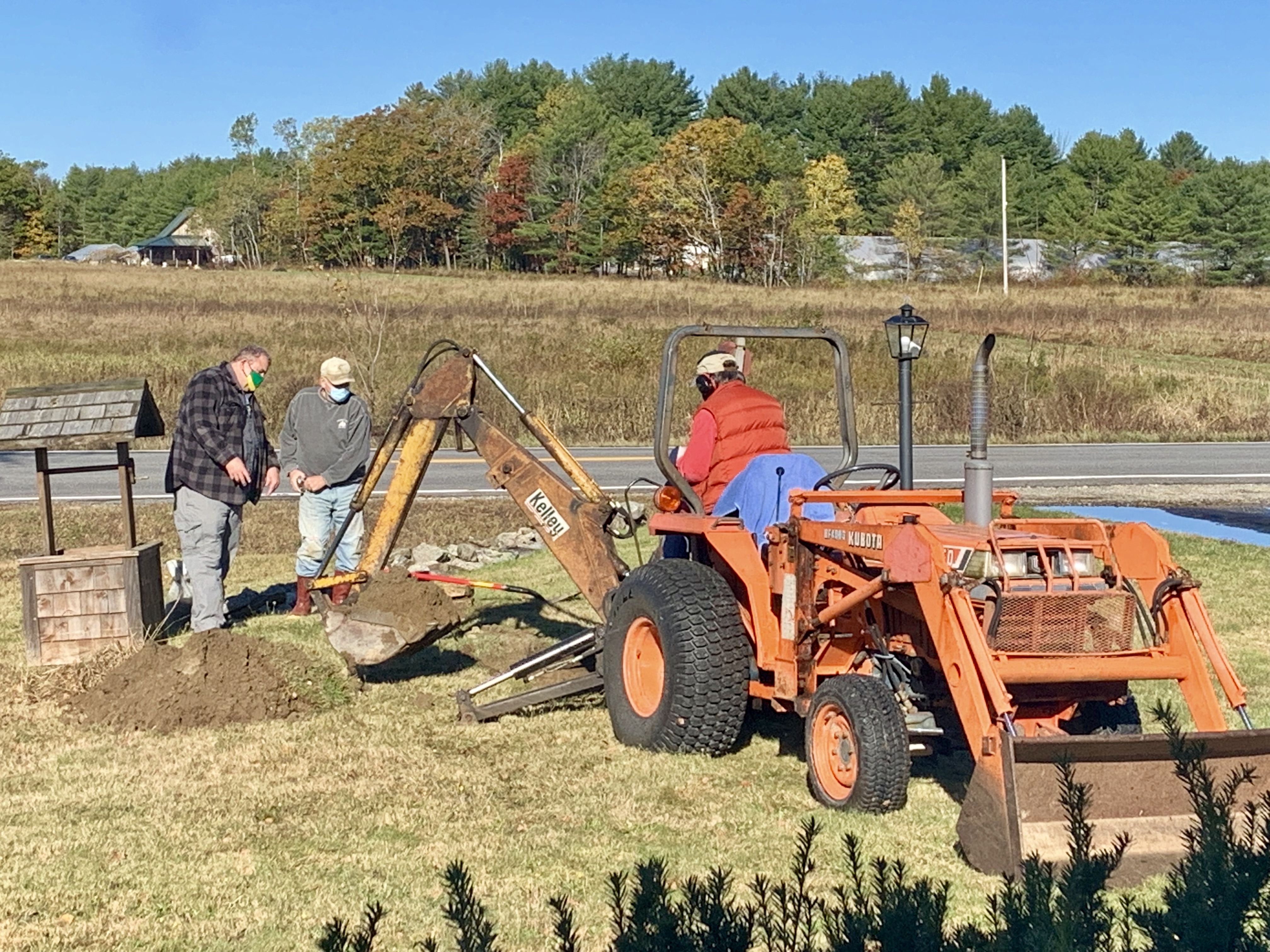 The man on the ground is our wonderful neighbor who brought over his toy to dig a hole.