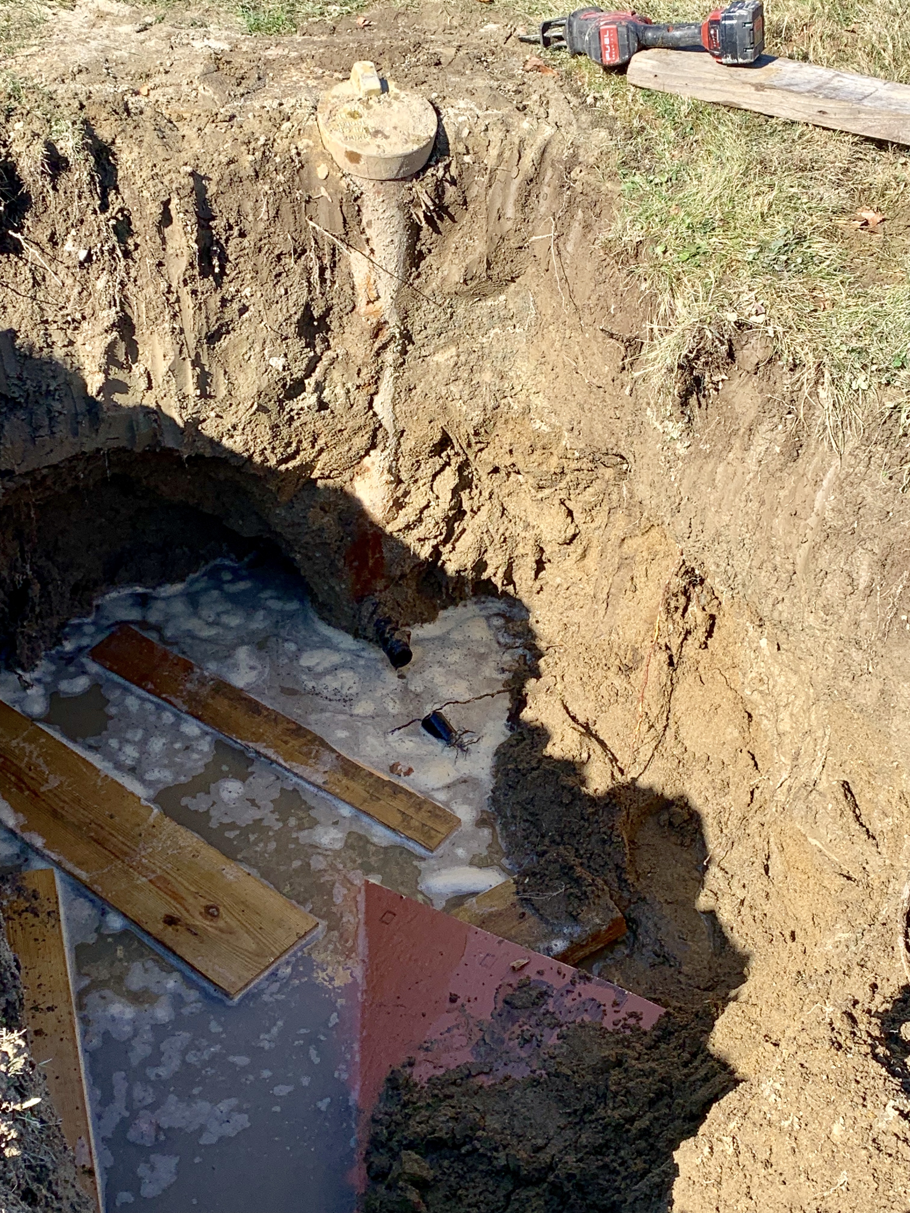 The broken pipe was found and luckily it was right next to the well access so we didn’t have to tear up more lawn or the house foundation.