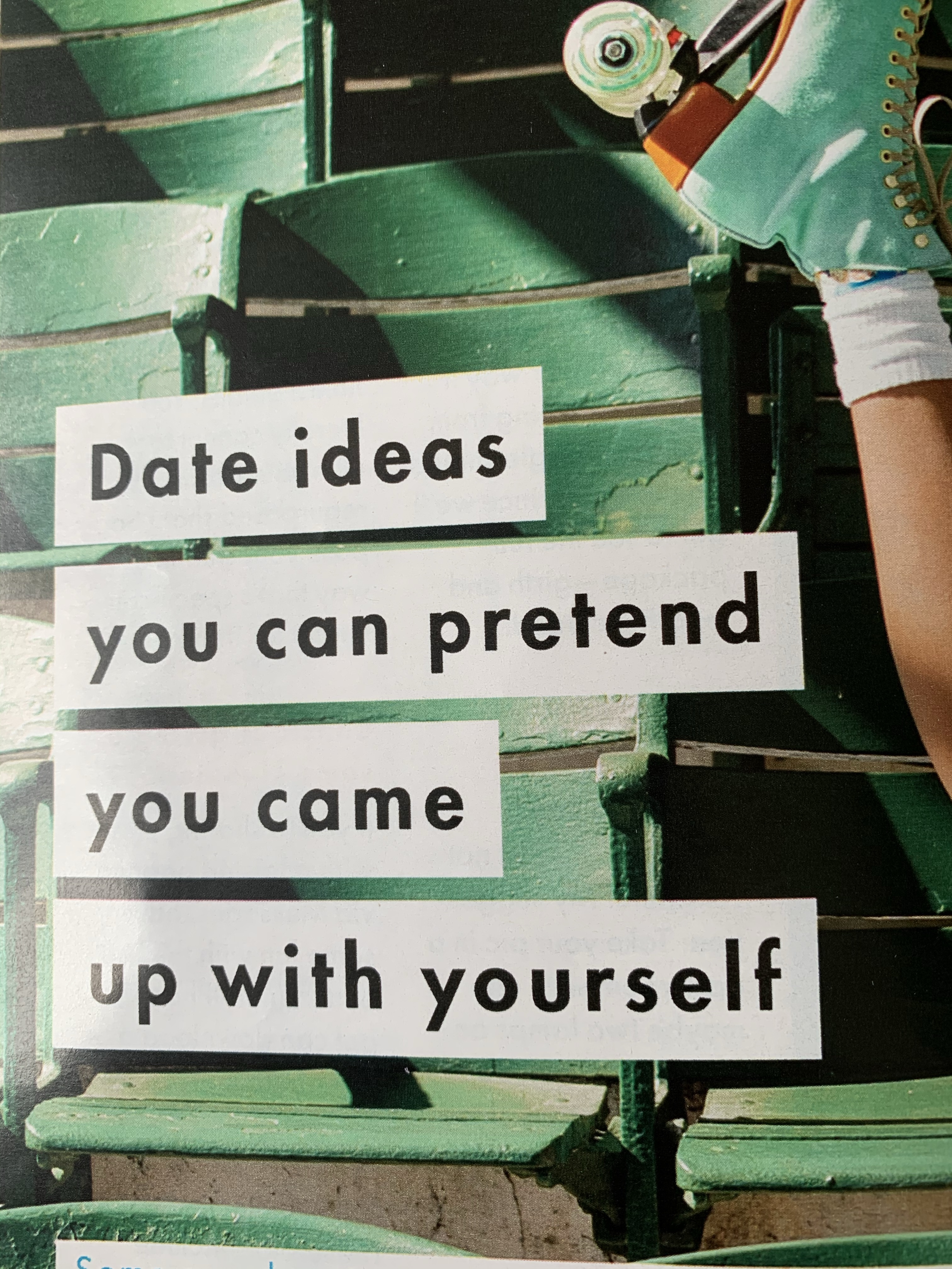 Date ideas seemed like an interesting read and a good way to see how things have changed since I was on the market back in the dark ages of the 80’s.