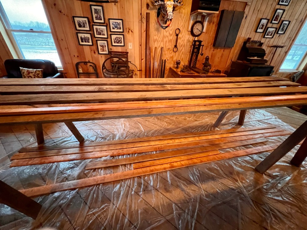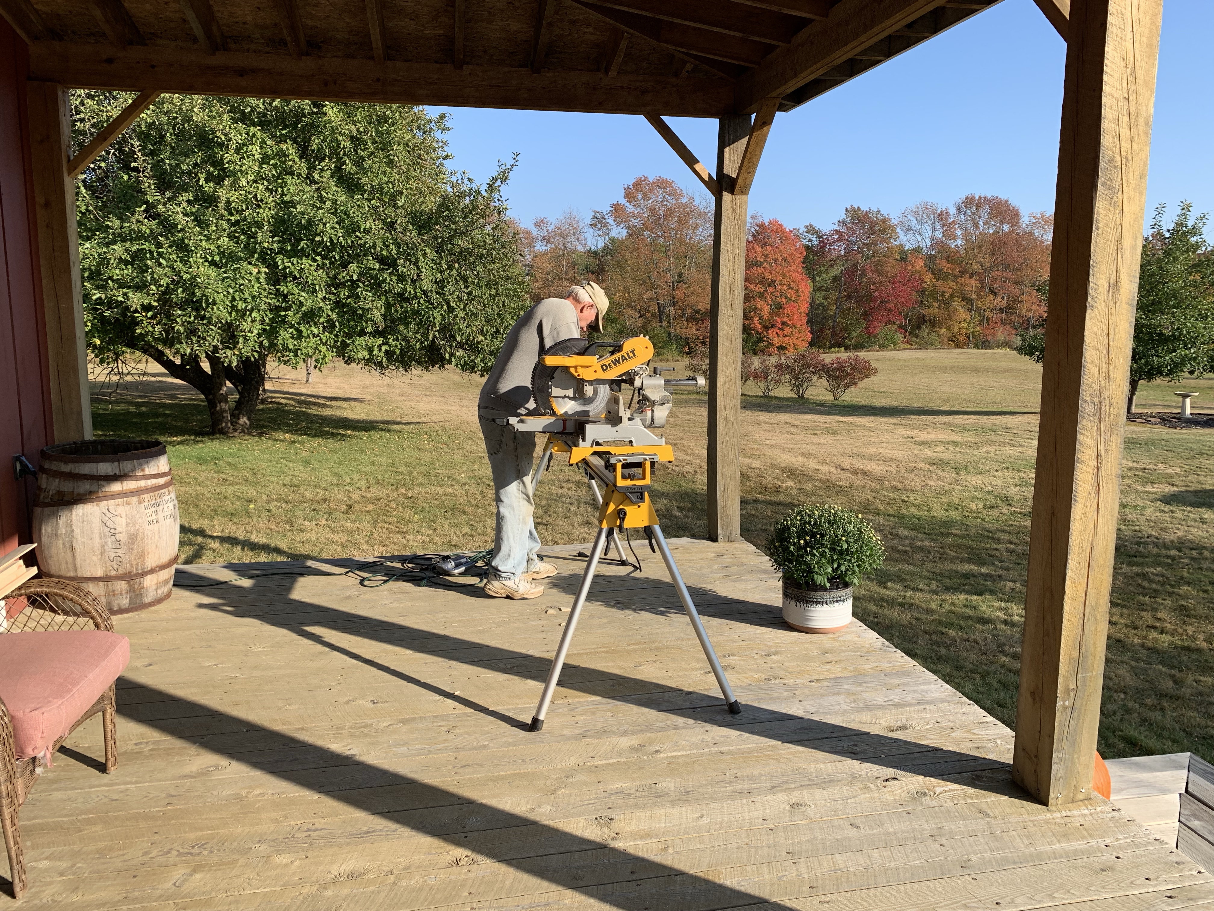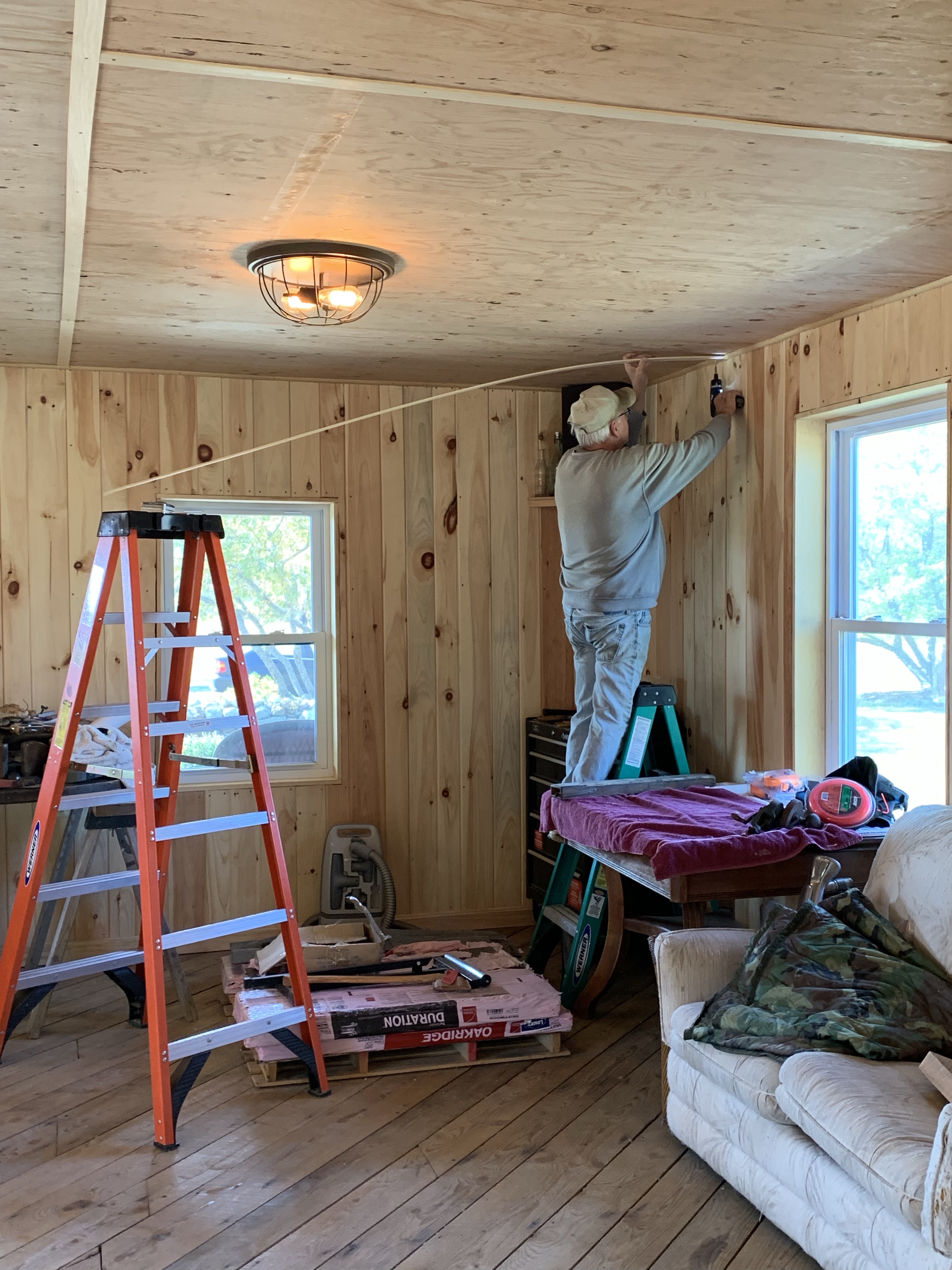 So now the husband wants to add floor moulding in his big barn… and you know what that means.