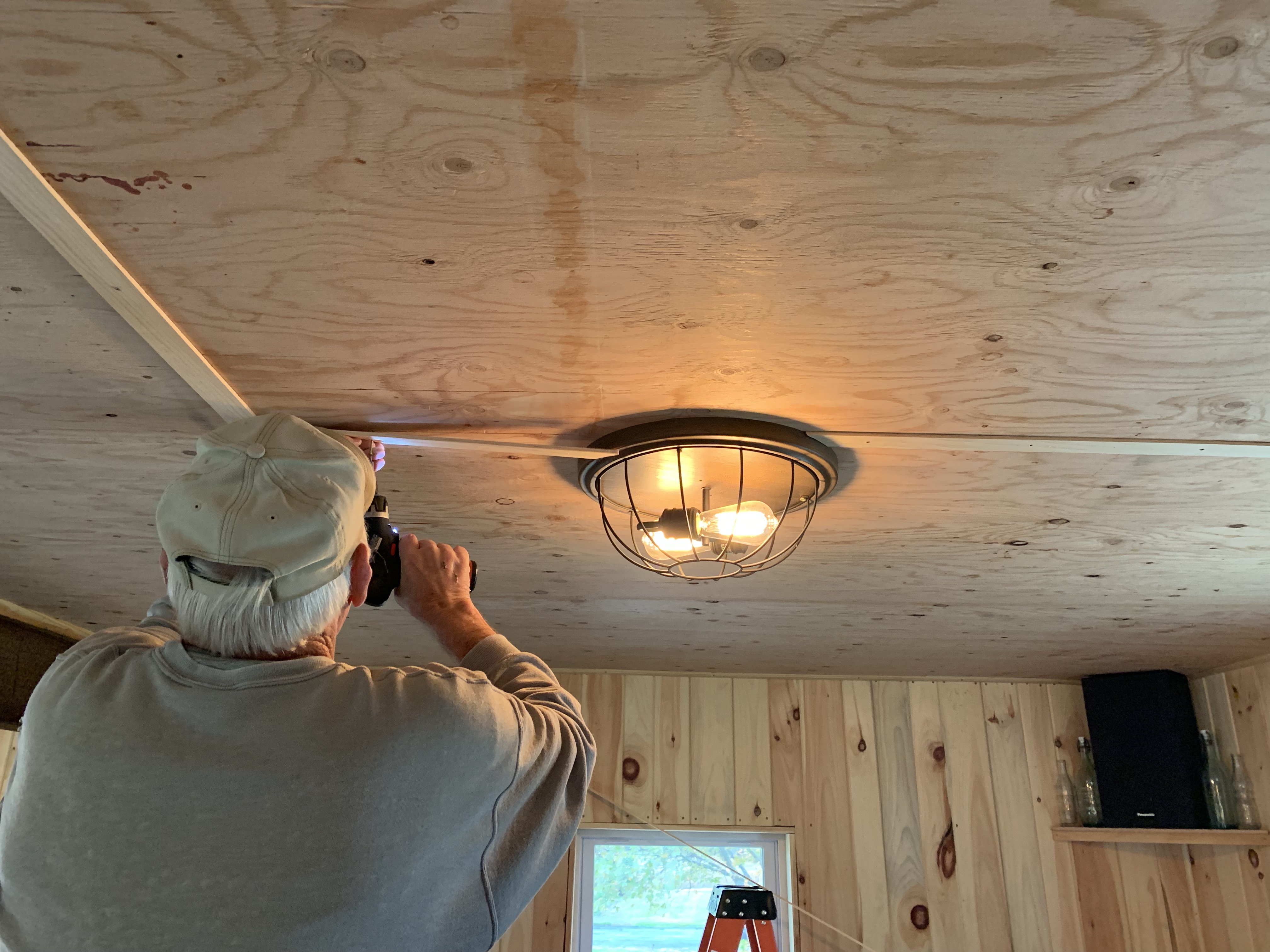 Two coats of stain, two coats of amber poly and one giant air bubble in the plastic later, we were done.