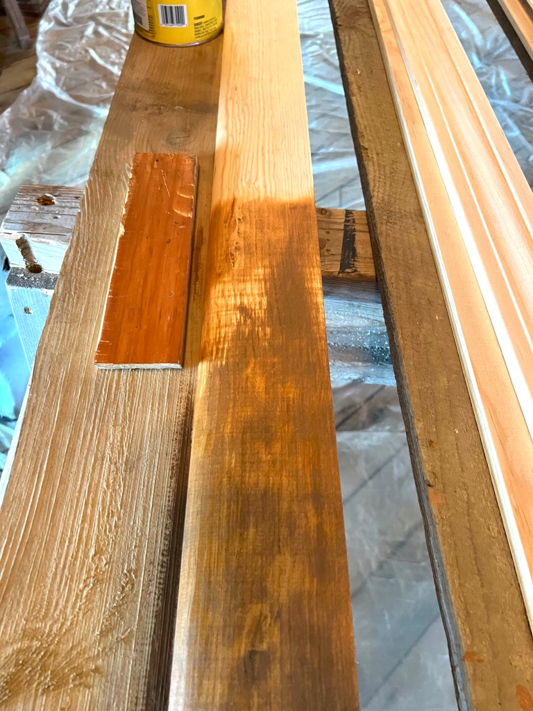 I say that because if you’ve ever stained multiple pieces of 10 foot moulding you’ll know they don’t all turn out the same due to variations in the wood.