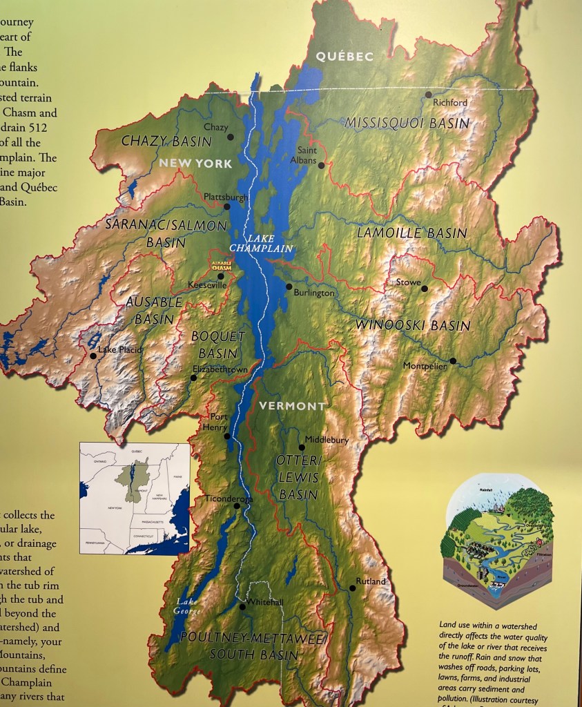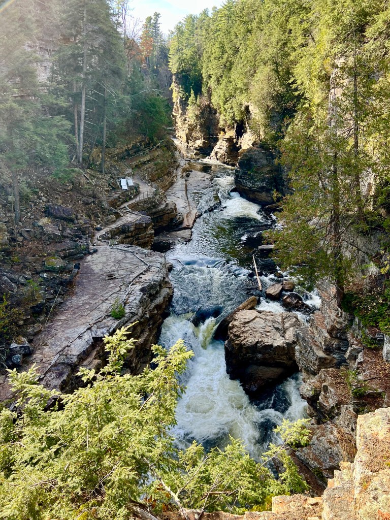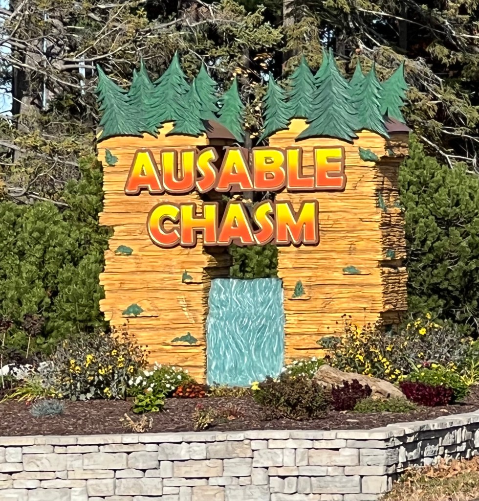 In case you can’t zoom in, one of the best tourist attractions of the Adirondacks is under the C in Lake Champlain. Au Sable directly translates to “of the sand” which makes sense since the chasm is a giant sandstone gorge.
