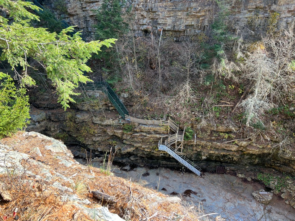 The Inner Sanctum trail at Ausable Chasm is well named as we were surrounded by cliffs and rushing water …. blissfully alone with the grandeur. A veritable rock sanctuary.