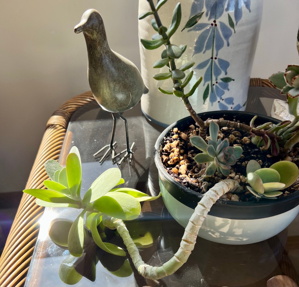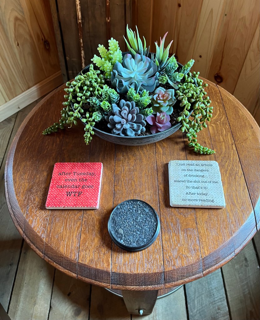 I used to have various pots of succulents scattered around the Barn Mahal/man cave. Mainly because no room I inhabit can be plantless but also due to their relatively carefree nature. Sadly I’m not out there as often as I used to be and though the husband still has friends in to play pool, he never thinks to water them… so with the heat pump sucking every drop of moisture out of the air all winter? A lot of them died.