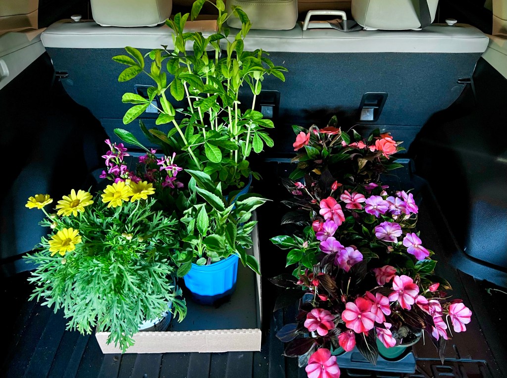 And it was back to the greenhouse for another trunkful. One can never have too many flowers.