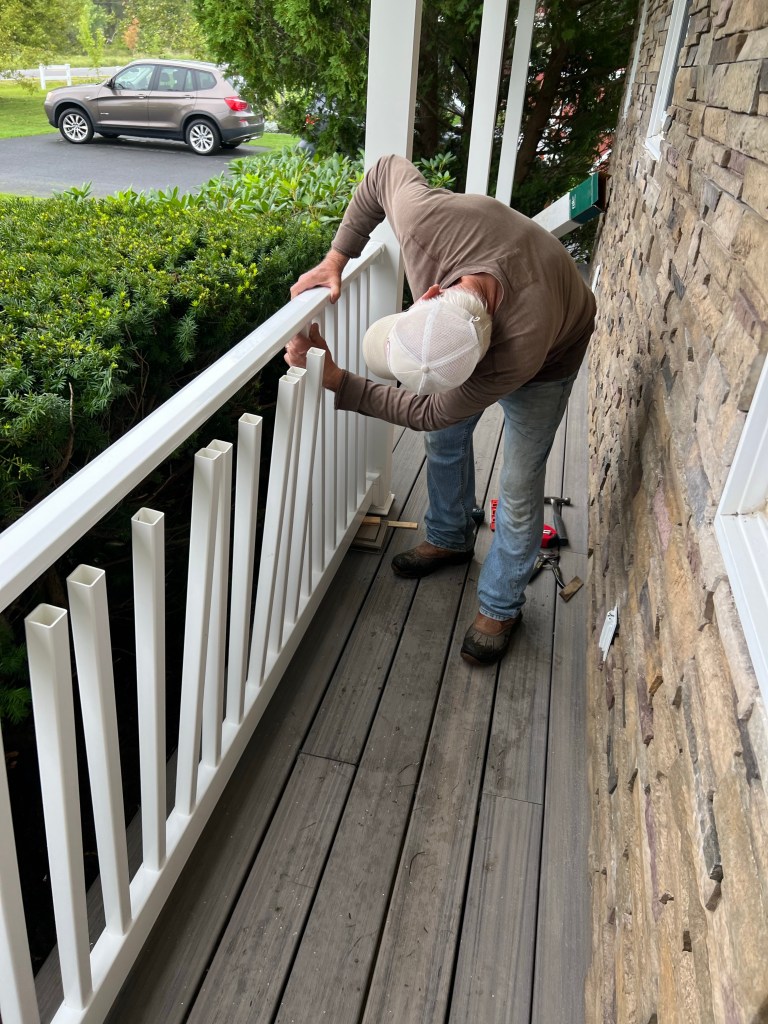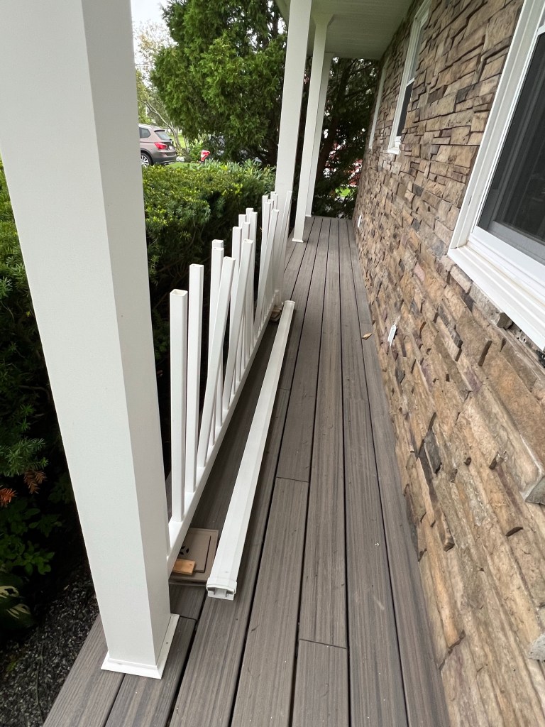 Since we have to wait for the custom made door to arrive (they said three weeks when we bought it, but now they’re saying five, which probably means six. Sigh.) the stone work had to be paused and we moved on to the oh so easy to install PVC railings and balustrades.