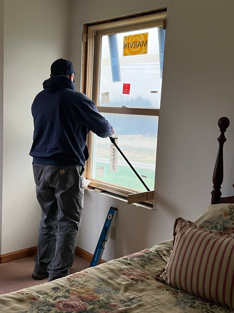 The contractor is the middle of another job for our neighbors which means we’ll have to wait a week or more till he’s free to come back over here and finish installing the rest of the windows and buttoning these up.