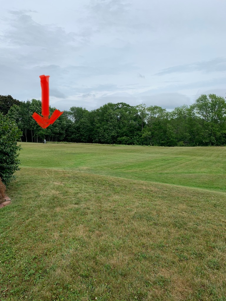 The woods that are wayyyy down there. At times it seemed like the trimming would never end.