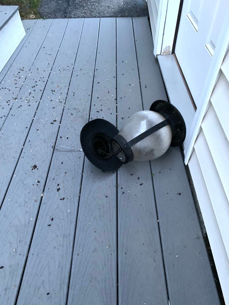 Our raccoon decided to take a bath, dig through my garden bed and then attempted to climb up the garage the other night.
