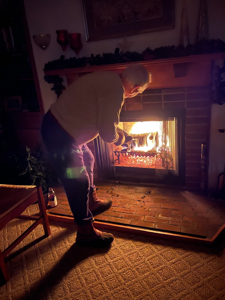 Thankfully we have a fireplace…. and while it won’t heat the whole house, it did manage to keep the living room at 58 degrees when the outside temperature dropped to 7. Of course my husband the Marine runs the operation.