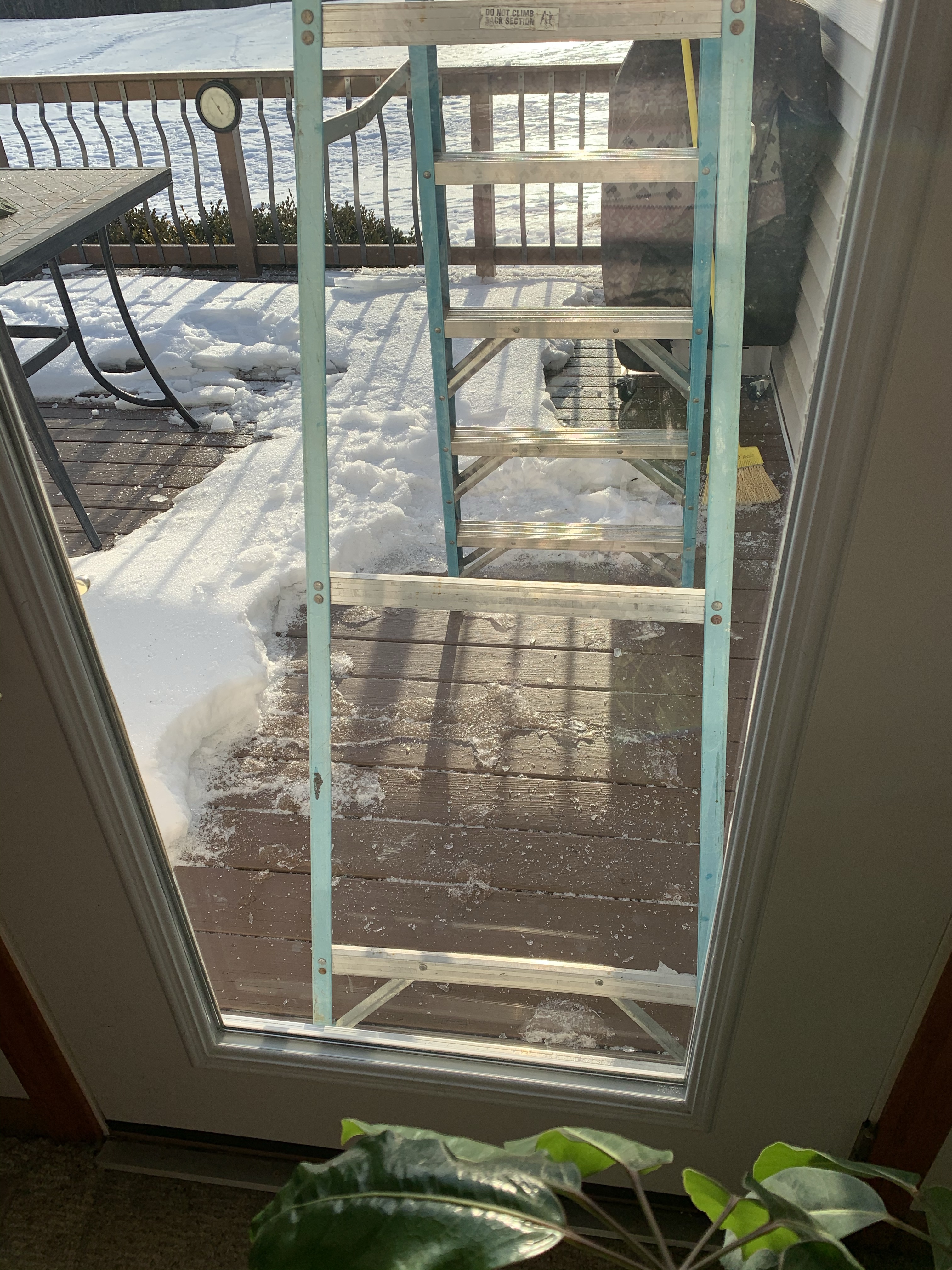 The snow came, turned to rain and miraculously the roof didn’t leak. But we’re due for strong winds in a few days so things are apt get interesting.