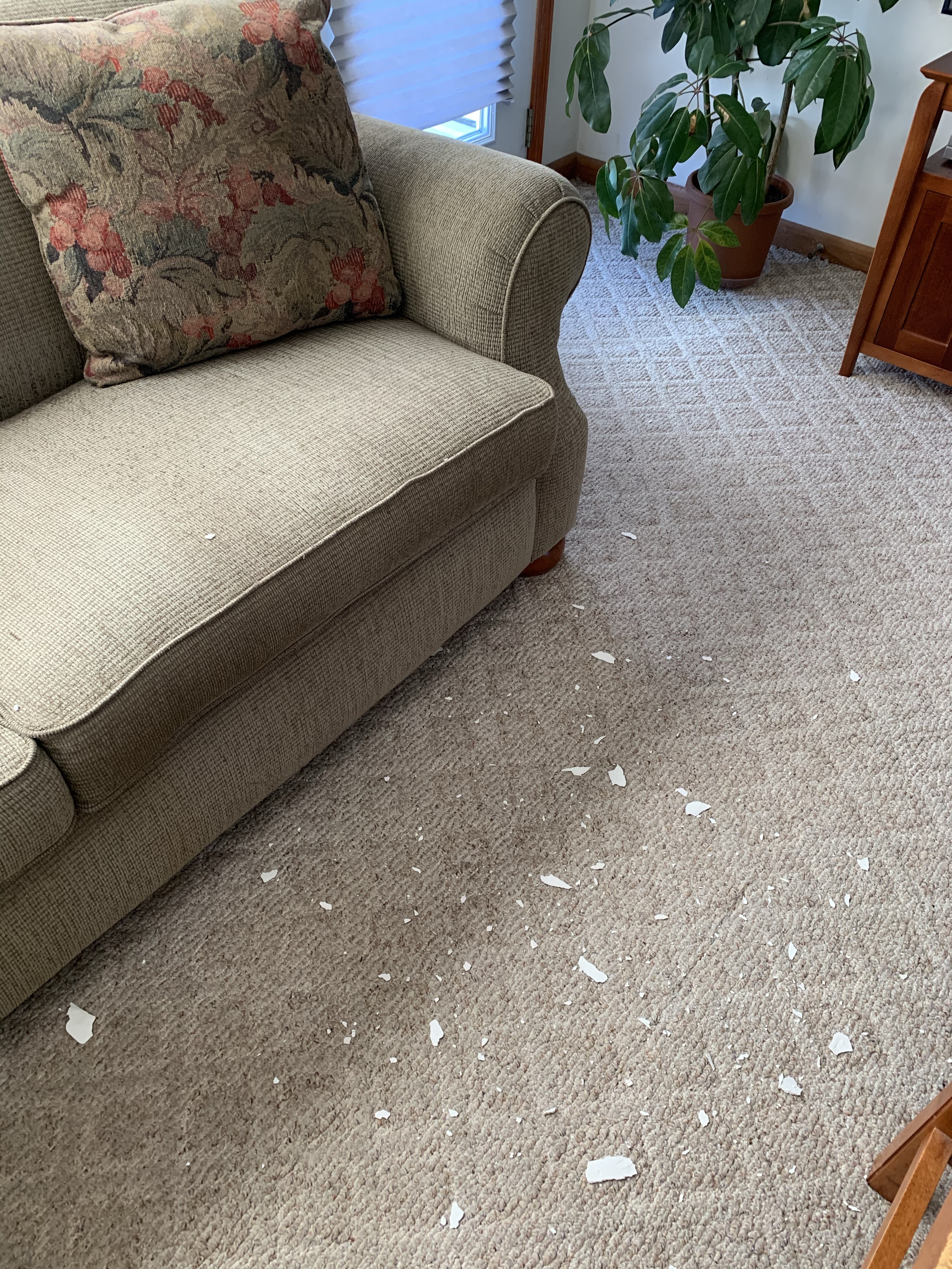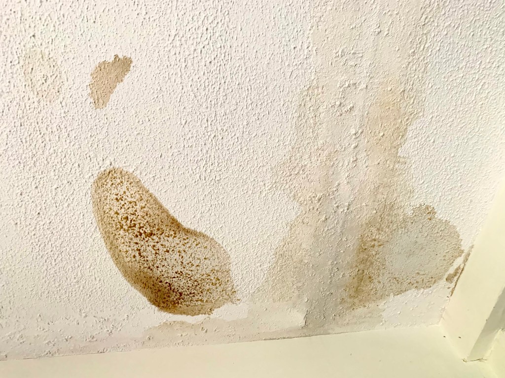 So I bleached and patched the ceiling, again. Cursing under my breath the entire time.