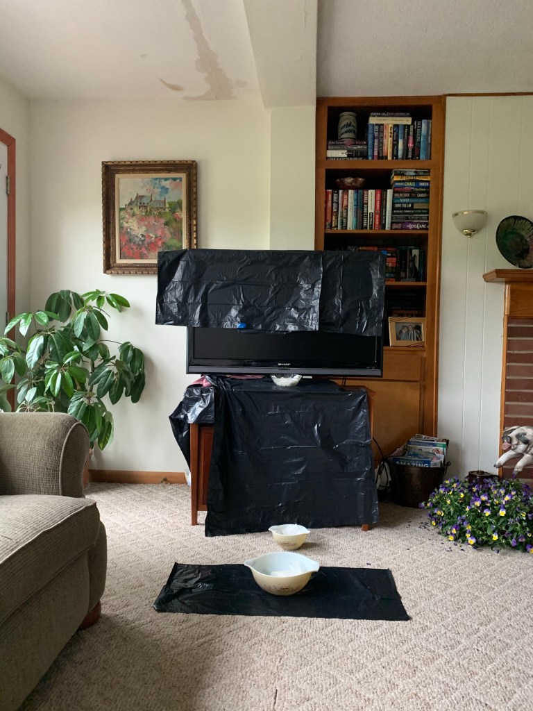 I don’t claim to know everything, but I do know if you’re going to strip a roof for repairs during a weekend when rain is predicted? You postpone or make damn sure you cover that sucker completely.