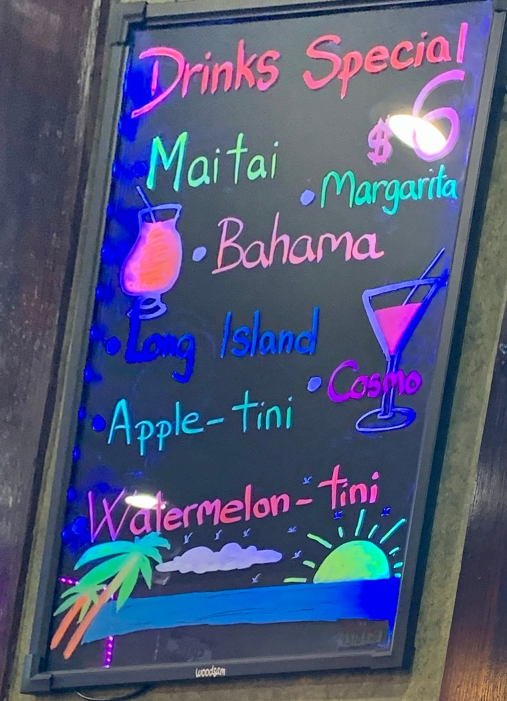 We floated out of the pub stuffed with seafood, feeling no pain and saw this sign on the way to the parking lot.