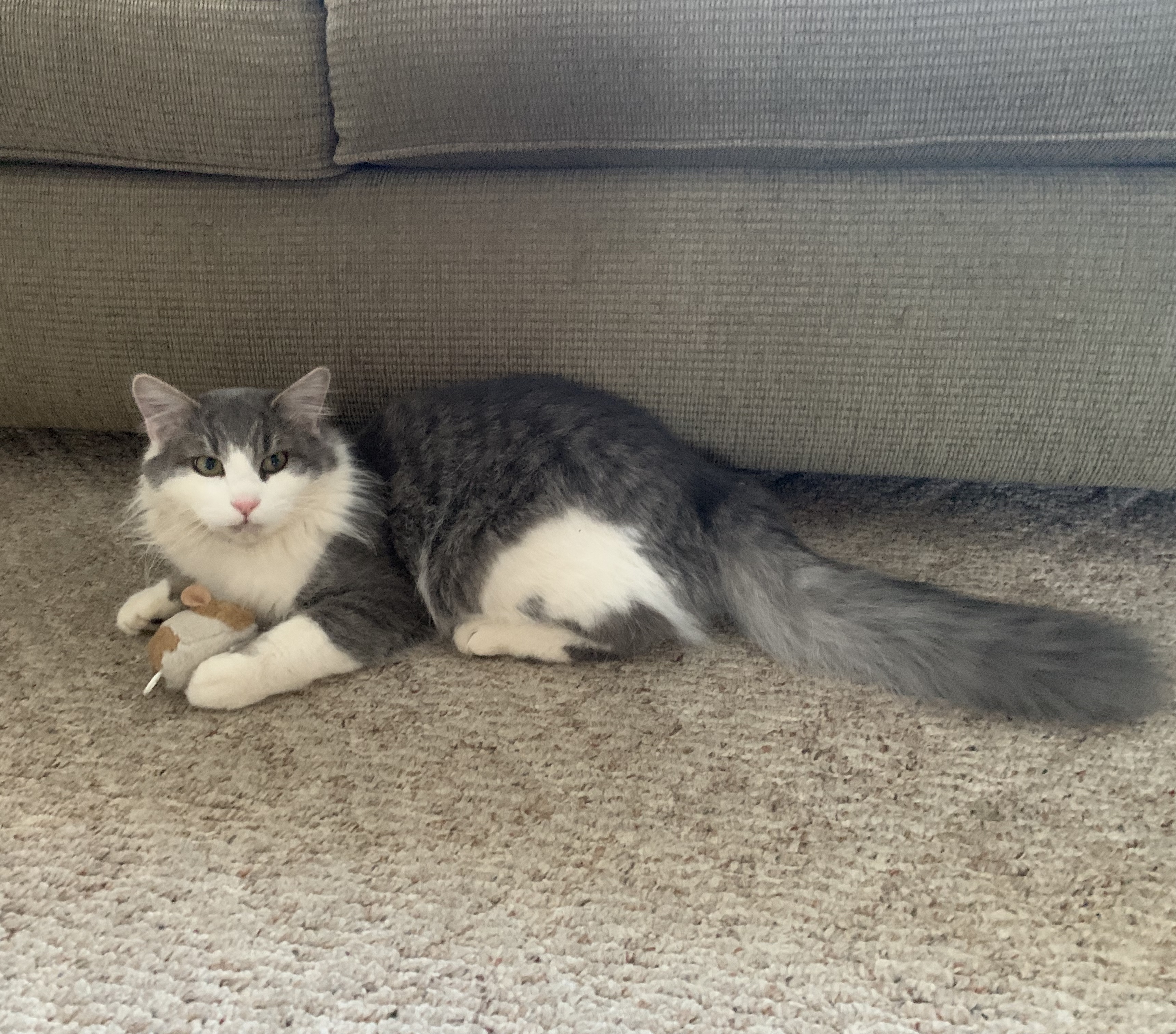 He’s clean, healthy, flea and ear mite free… and a genuine love bug. Someone clearly cared for this kitty. But after posting on numerous lost pet sites, numerous local Facebook pages and asking everyone I know? It looks like he’s ours.