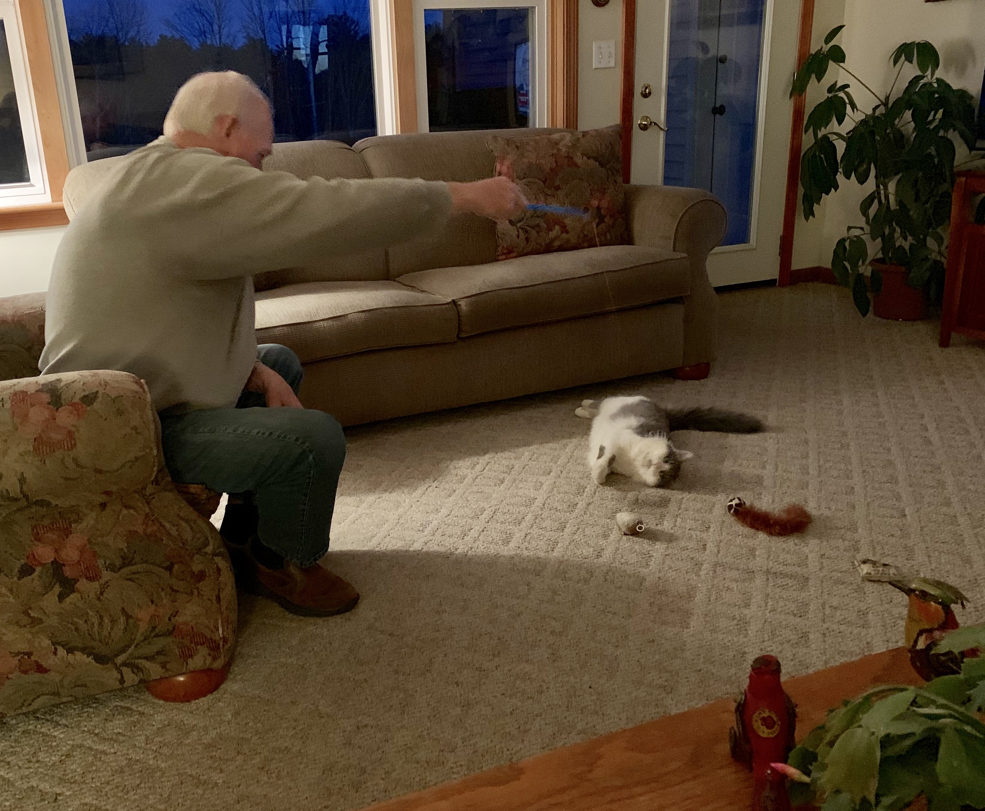 The cat my husband swore we wouldn’t have any more of after our last one passed because he wanted to be free to travel.