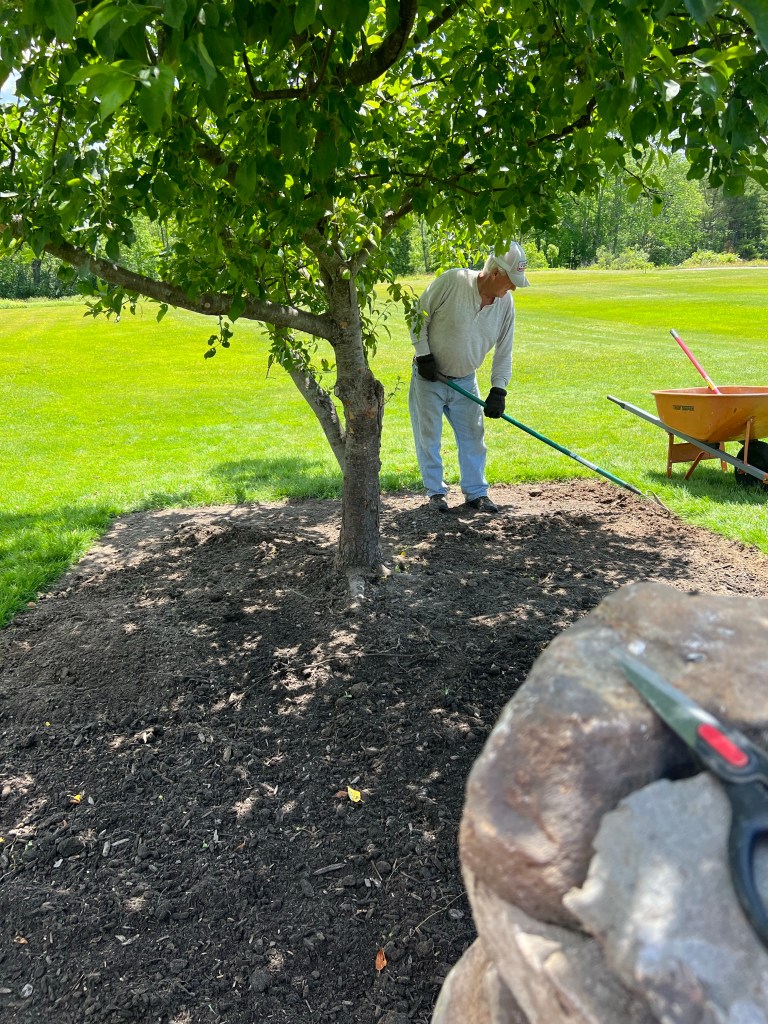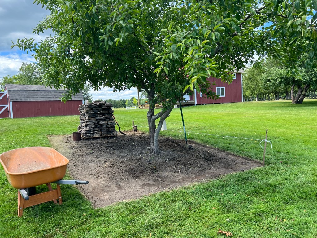 The existing bed measured 10×20… and when I first discussed the project with my husband I told him I wanted to expand it by at least 4 feet due to the apple tree that took up residence a decade ago. He heard me, but clearly didn’t care.