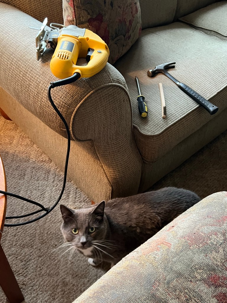 And since my husband turned his barn and workshop into a man cave …. this meant doing surgery in the living room.