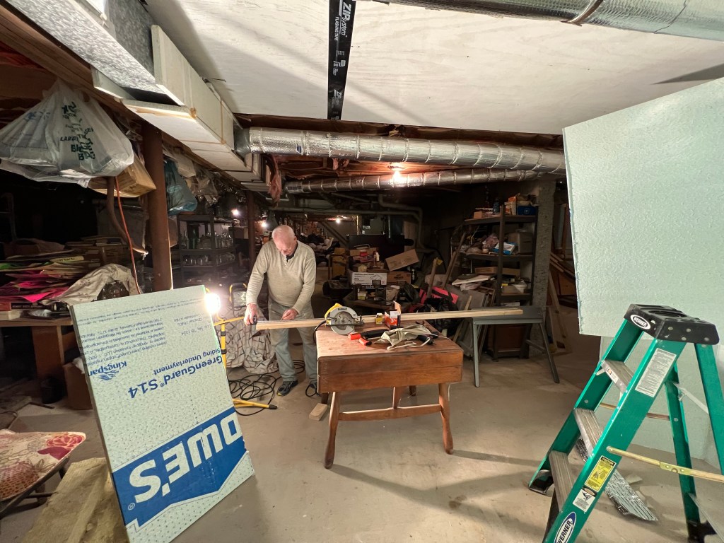 I stood unnoticed, chortling while I watched him attempt to wrangle trifold insulation into a corner by himself. It was quite amusing, but I took pity on the poor guy after a few minutes and lent a hand.