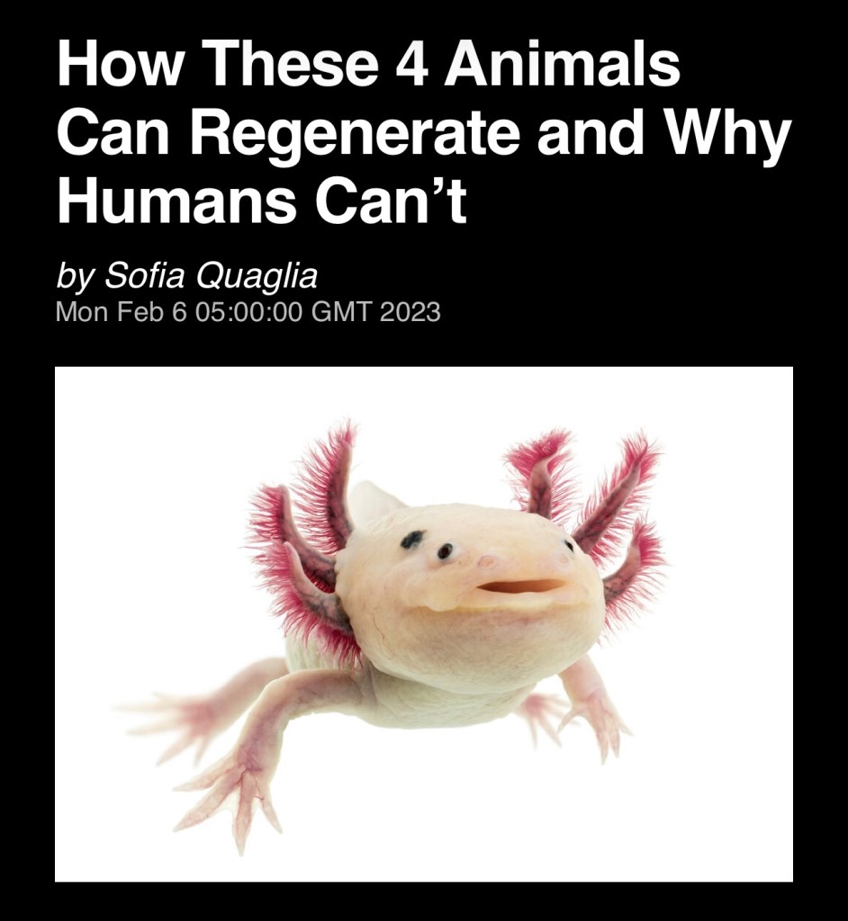 I don’t know about you, but I’m quite glad humans can’t regenerate. Think how many women Donald Trump could grab with all those extra appendages.