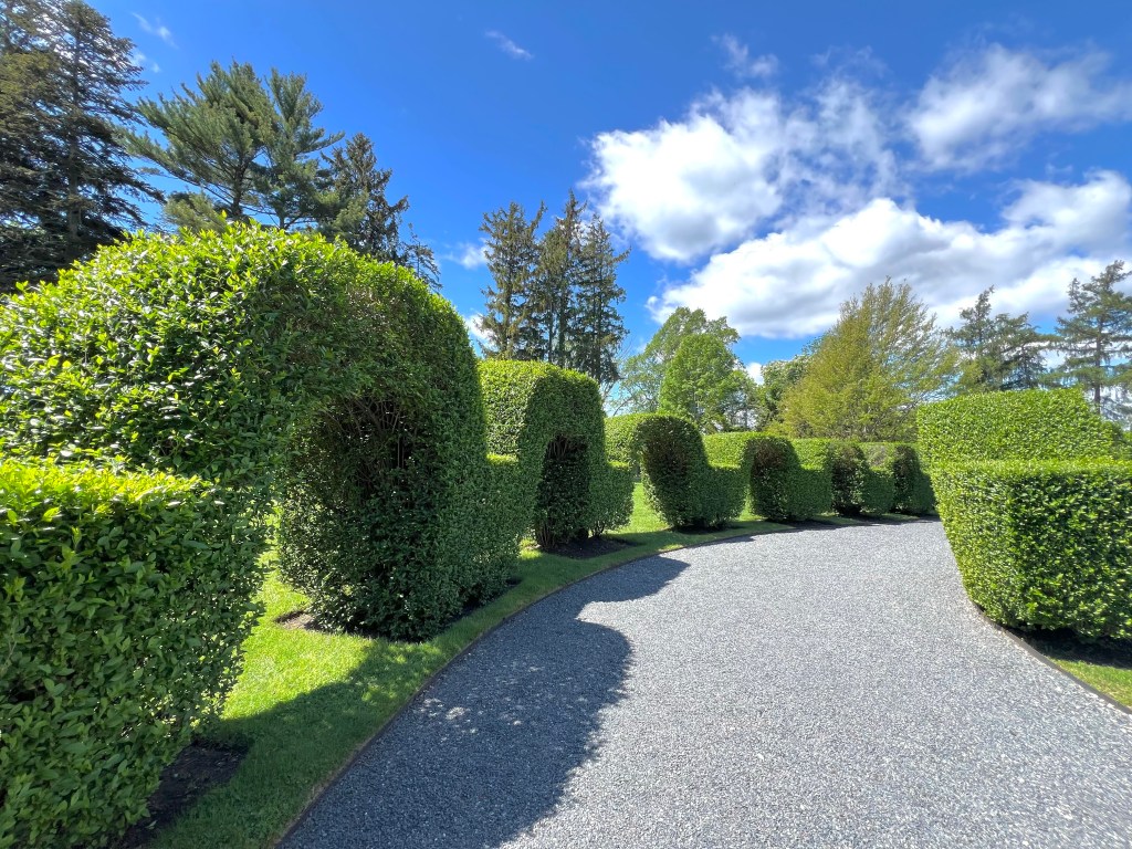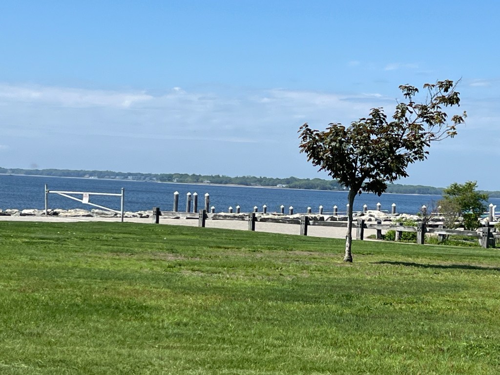 The lawn slopes down to Narragansett Bay, where we spotted another topiary.