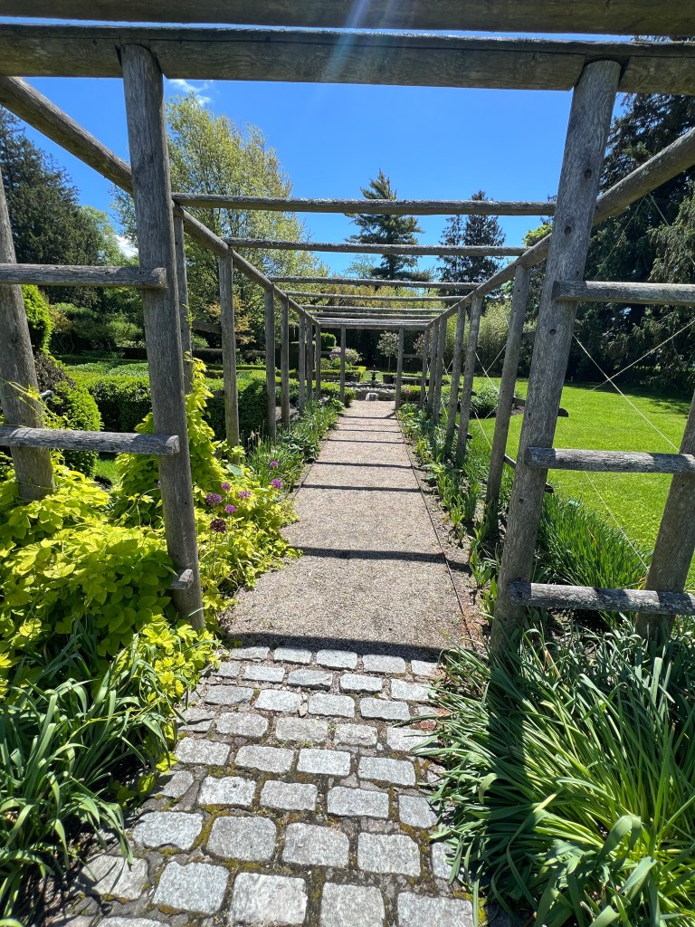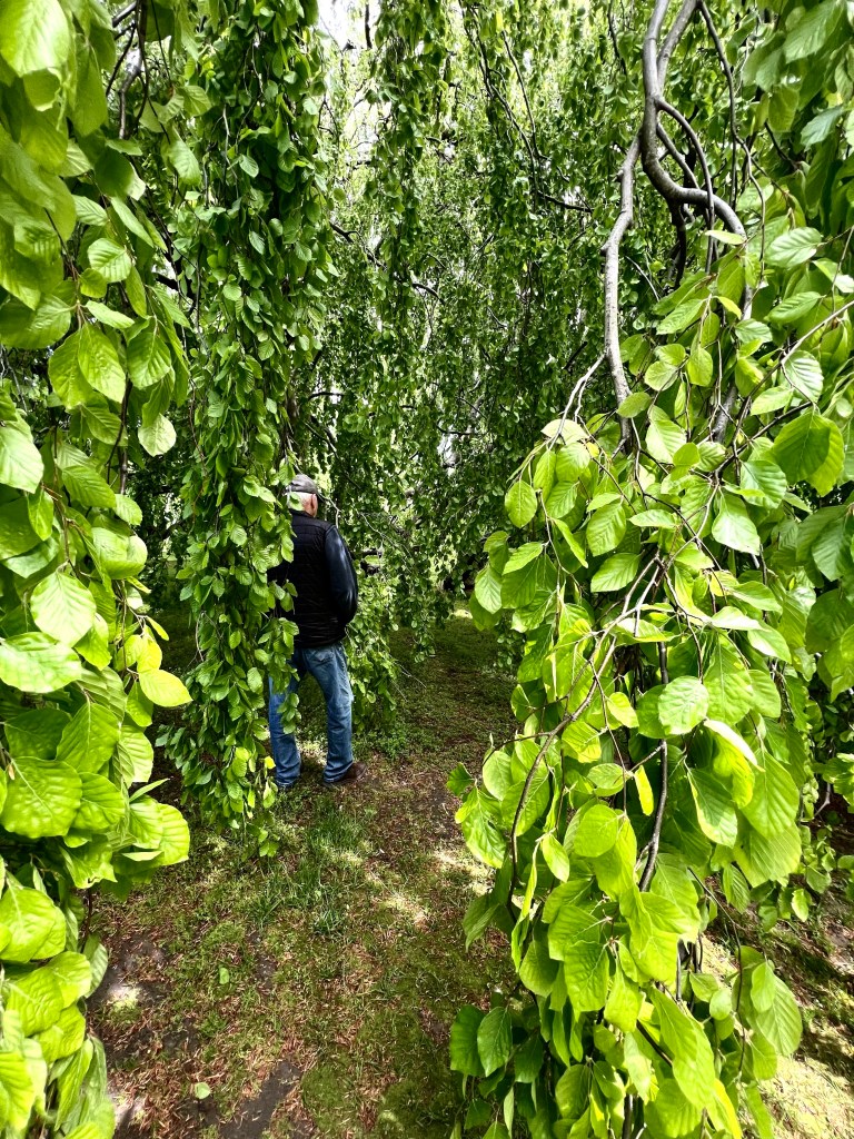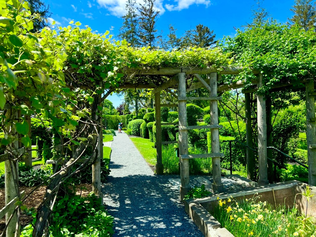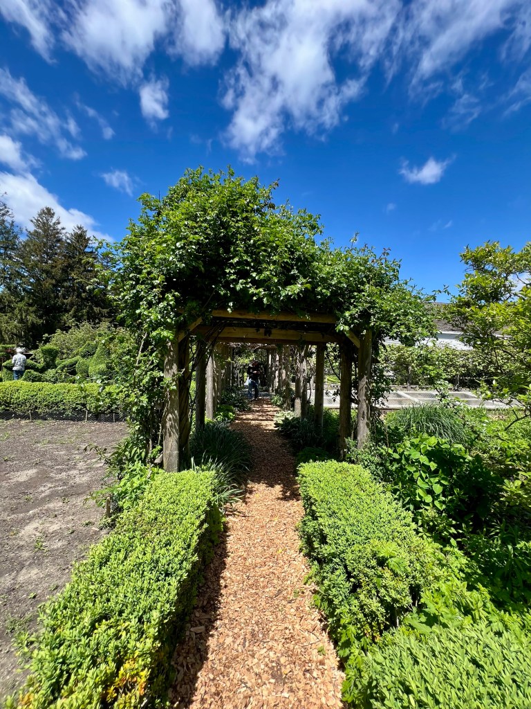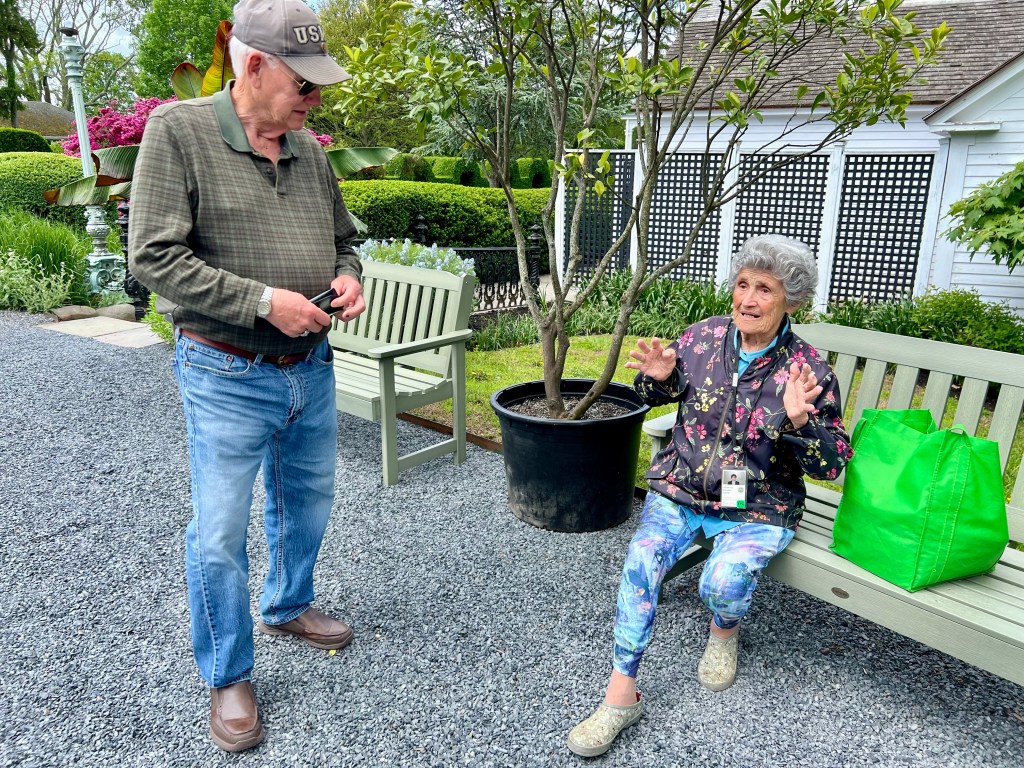 She lives right up the road and walks down to the gardens every day to help the docents …. as well as socialize. She told us she was quite unhappy with the current crew of topiary trimmers. The policeman was too fat, the giraffe was too short and the goose looked like a duck.
