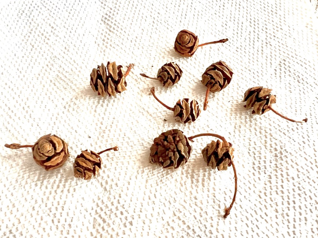 Whose surrounding ground was littered with little cones just like the ones my husband collected.