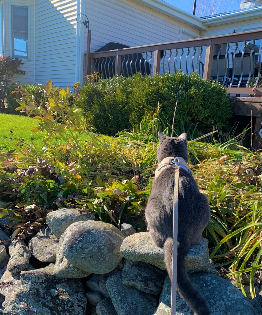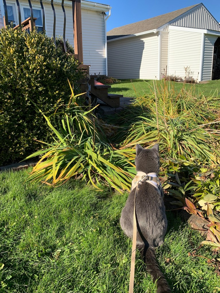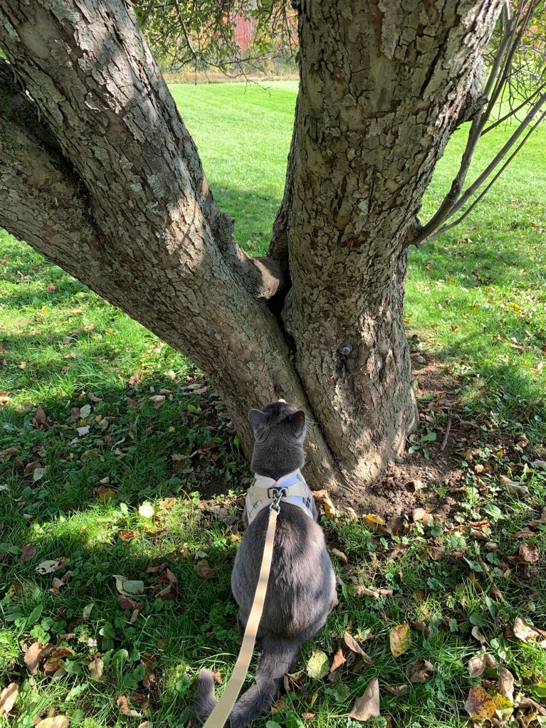 Ever try to wrangle a leashed and harnessed cat out of a tree? It’s not a smooth process and I don’t recommend it.