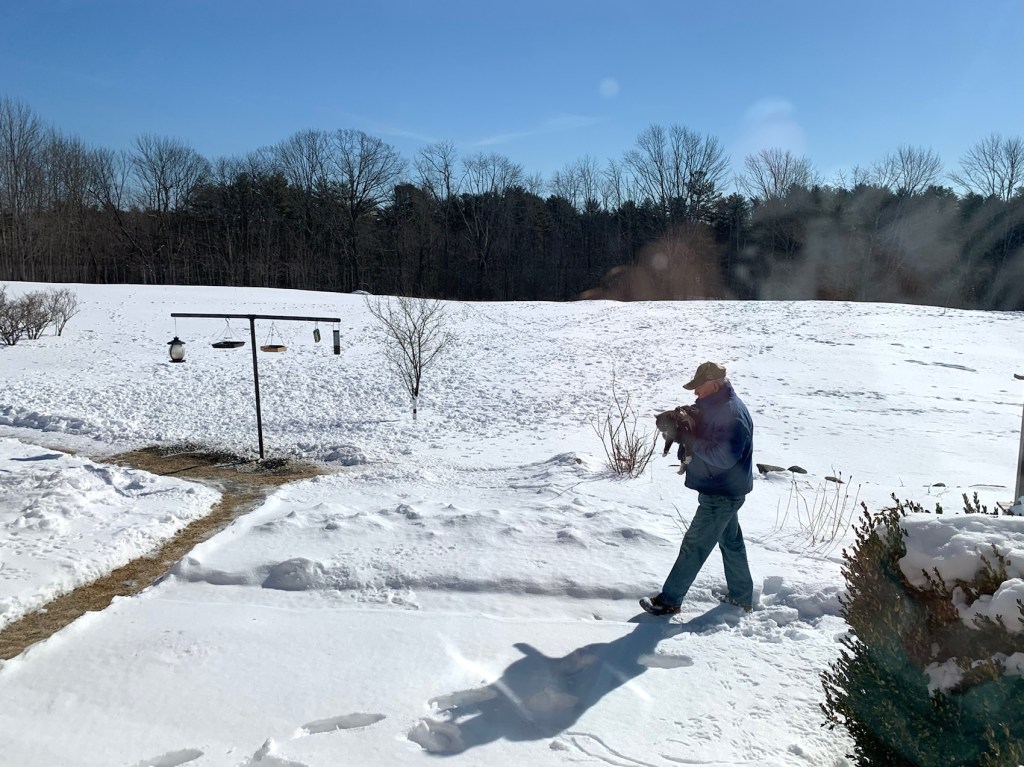 Walkies with Lord Dudley Mountcatten are continuing since the weather has been warm and cooperative. (It’s Maine. Anything over 10 degrees is considered warm.)