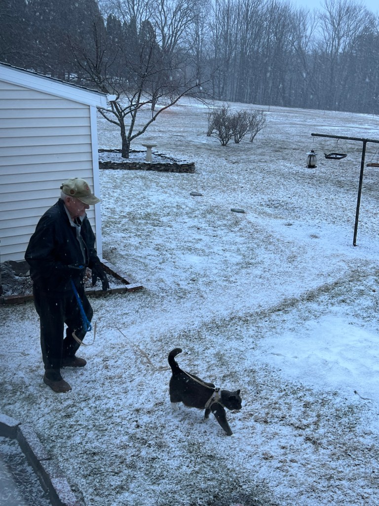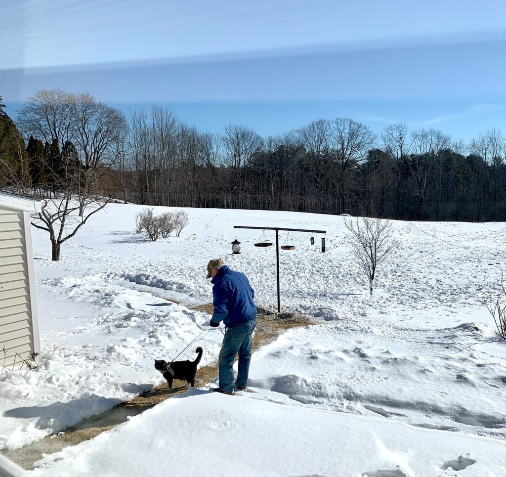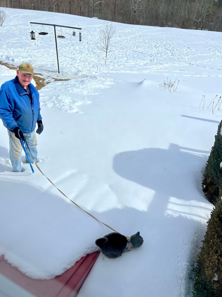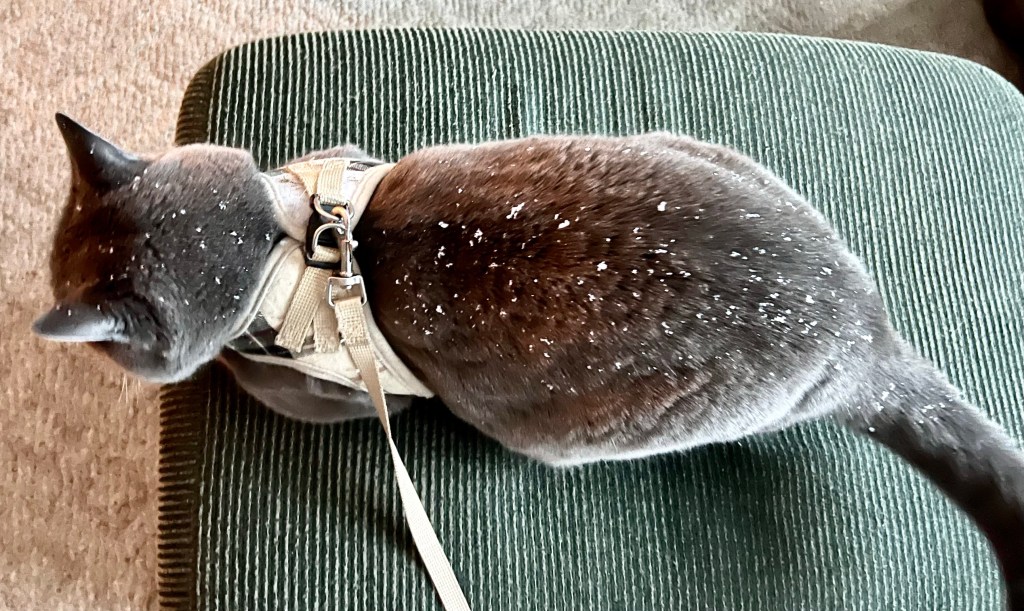 Lord Dudley Mountcatten used to love going outside. I’d say “walkies” in my best falsetto and he’d bound into the room anxiously awaiting the harness and leash. Now that full Maine winter has arrived?