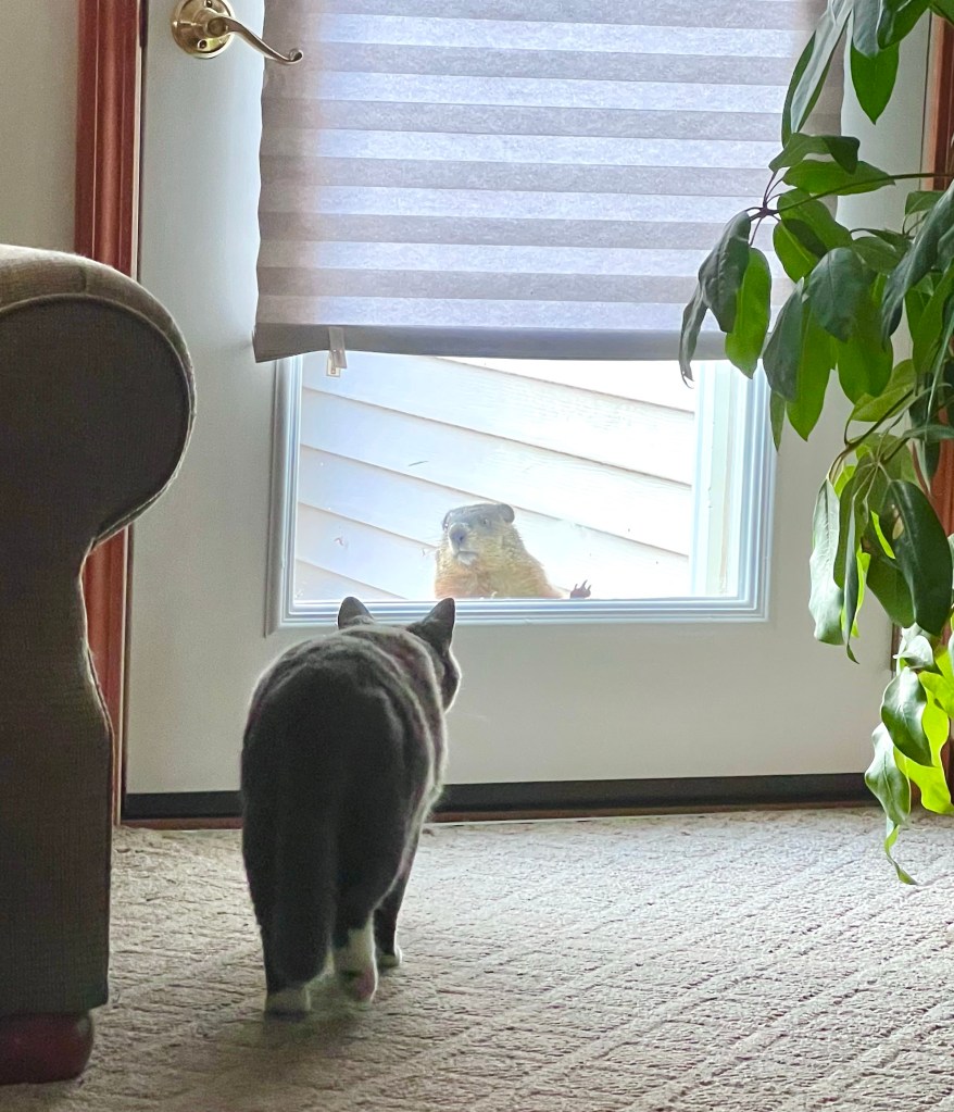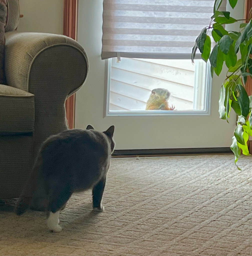 We seem to be down to three baby woodchucks from seven. I prefer to think this is a result of momma chuck kicking a few of the kids out of the den and not the result of predation. But this little guy?